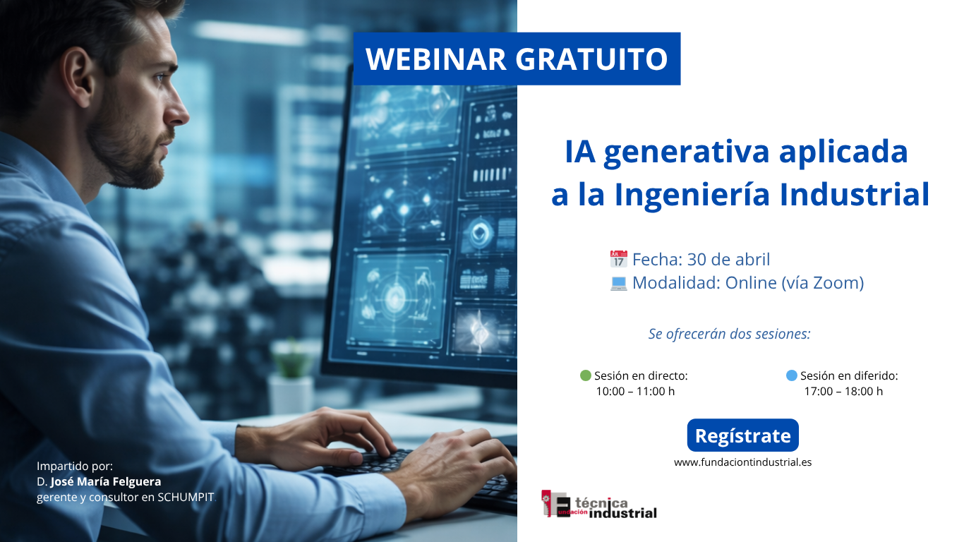 La Fundación Técnica Industrial organiza este webinar online en el que se mostrará cómo aplicar la Inteligencia Artificial generativa en el ejercicio profesional de la ingeniería de forma práctica y accesible.